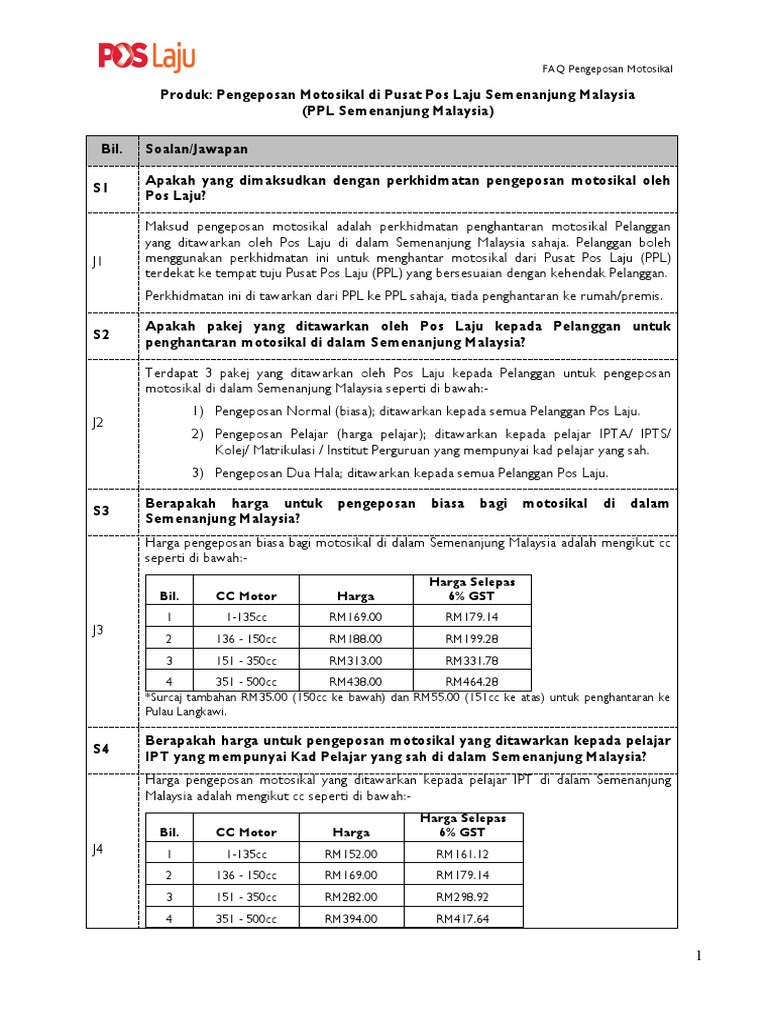 Saya hanya nak berkongsi dengan anda baru-baru ini saya telah dilantik sebagai pengurus cawangan bagi menjalankan satu perkhidmatan penghantaran 1. Berpuas hati dengan tawaran harga teruskan dengan mengisi maklumat dan membuat bayaran secara. Pos Laju provides cling wraps to protect your motorcycle.